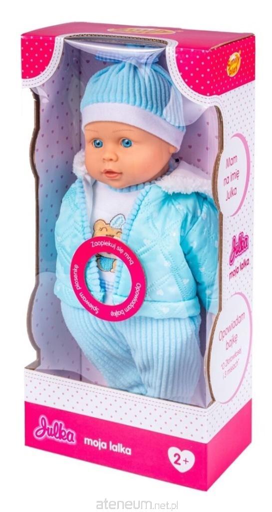 Lalka Julka lubi, kiedy się nią opiekujesz i zabierasz ze sobą na spacery. Miękka lalka jest ubrana w czapkę, szalik, kombinezon z prążkowanymi spodniami oraz niebieską pikowaną kurteczkę obszytą prążkowanym materiałem w kolorze spodni. Lalka, po naciśnięciu na brzuszek: Mówi po polsku pełnymi zdaniami Śpiewa piosenkę Opowiada bajkę o Złotowłosej i 3 misiach Podczas zabawy lalkami, zachodzą silne procesy sensoryczne, które są niezbędne do prawidłowego rozwoju dziecka. Dziecko, podczas zabawy lalką odbiera w mózgu sygnały, które następnie przetwarza i odpowiada, odpowiednio reagując. Lalki to nierozłączny element dzieciństwa. Zachęcają do aktywnej oraz kreatywnej zabawy, dają również możliwość stworzenia własnego świata. Dzięki nim uczymy się opiekuńczości oraz wrażliwości. Z lalką dziecku łatwiej jest wkroczyć w świat radości, strachu, euforii i smutku. Noszenie, kołysanie, przytulanie lalki przynosi wiele pozytywnych emocji i pozwala na harmonijny rozwój. Poprzez zabawę pobudza rozwój systemów sensorycznych. Wysokość lalki 39 cm