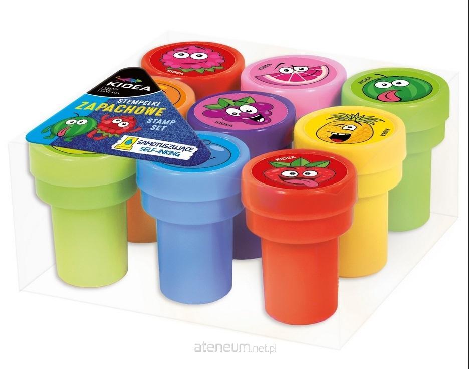 Stempelki zapachowe wzbogacone zostały w przyjemny aromat, który uatrakcyjnia produkt i sprawia, że dzieci chętniej po nie sięgają. Nowe, ciekawe wzory w szalone owoce (malina, truskawka, pomarańcza, arbuz, grejpfrut, jagoda, ananas, jabłko, winogrono) udekorują każdy rysunek małego artysty. Stempelki są samotuszujące, więc nie wymagają używania dodatkowej poduszki z tuszem.