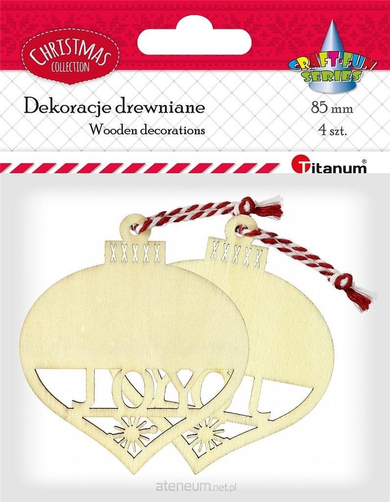 Dekoracje z naturalnego drewna, do zawieszenia. Mogą zostać użyte jako samodzielne ozdoby lub stanowić element zdobniczy przy tworzeniu kartek okolicznościowych, zaproszeń, pamiętników, albumów, pakowaniu prezentów, tworzeniu dekoracji świątecznych, wystroju okien, firan, luster, jak i zdobieniu wnętrz, np. dziecięcych pokojów czy sal przedszkolnych. Doskonałe uzupełnienie dla techniki decoupage i scrapbooking. Wzór: bombka ażurowa. Wymiary: 75x85mm. 4 szt. kolor: naturalna