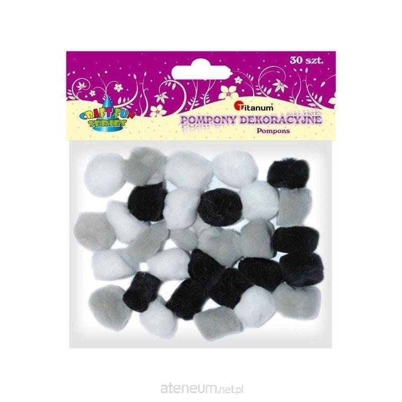 Pompony akrylowe. Kolor: tonacja szara. Średnica: 25 mm. 30 szt. w opakowaniu