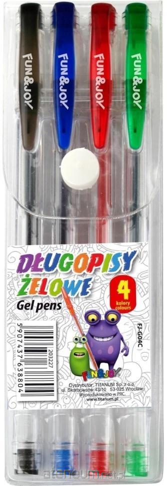 Komplet długopisów w 4 kolorach, plastikowej, przezroczystej obudowie, zatyczka z klipsem w kolorze wkładu. Kody wkładów: czarny: 226940, niebieski: 226939. Grubość linii pisania: 0,7 mm. Opakowanie: 4 szt.