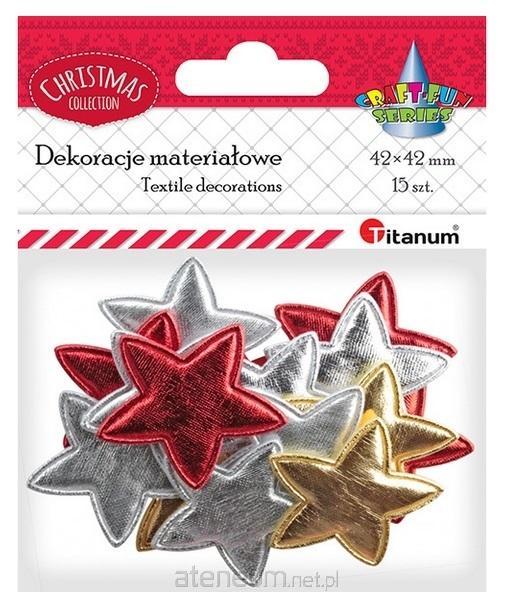 Aplikacje materiałowe gwiazdki 44x44mm czerwone, złote, srebrne 15szt.
