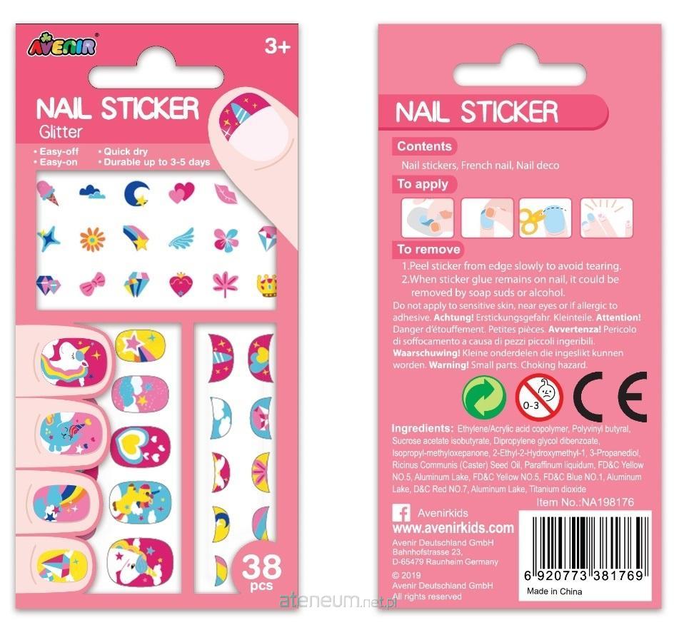 Zestaw ozdobnych naklejek na paznokcie od marki Avenir powstał specjalnie dla młodych dam. Będzie to wspaniały prezent dla każdej modnisi! Zestaw zawiera 38 tematycznych naklejek na paznokcie w różnych kształtach i rozmiarach. Naklejki są łatwe w aplikacji, utrzymują się 3-5 dni. Motyw brokatowych jednorożców spodoba się dziewczynkom. Wiek: 3+. Wymiary opakowania: 13 x 6,5 cm