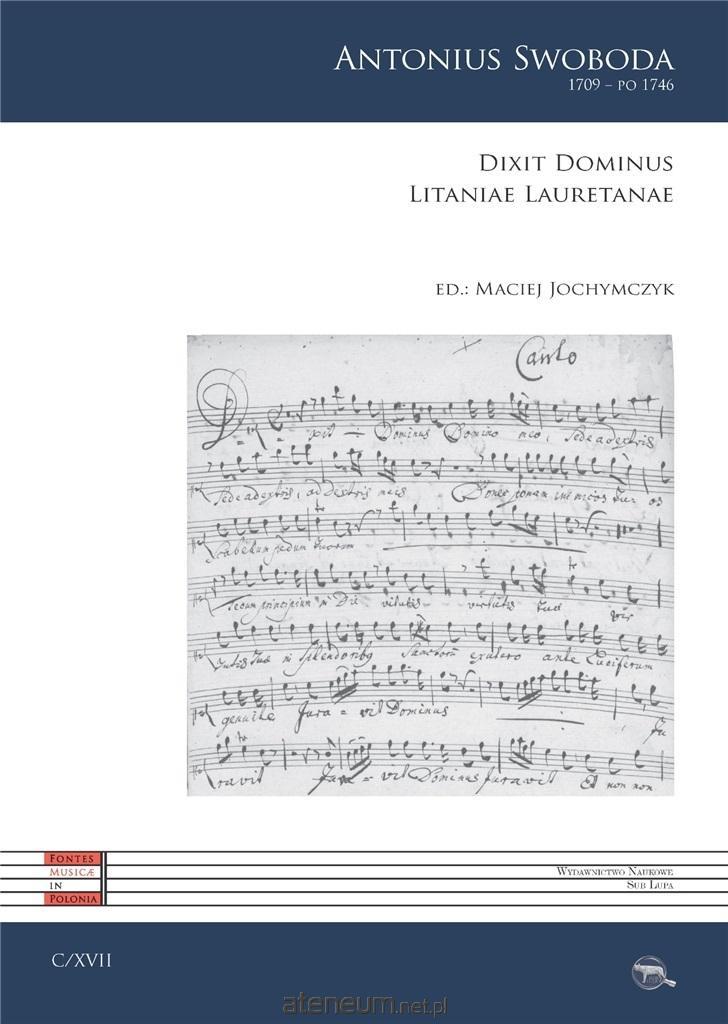 Antonius Swoboda (1709 - po 1746) wstąpił do zakonu jezuitów w Jnie. Przez następne lata działał w Ołomuńcu, Tely, Pradze, Wrocławiu i Kłodzku, gdzie m.in. opiekował się zespołami muzycznymi tamtejszych konwiktów. W roku 1746 został wydalony ze zgromadzenia, po czym prawdopodobnie działał jako muzyk w jednej z licznych kapel regionu. Kompozycje publikowane w niniejszym zeszycie "Dixit Dominus i Litania" pochodzą ze zbioru muzykaliów kościoła farnego pw. św. Jadwigi Śląskiej w Grodzisku Wielkopolskim i przechowywane są w Archiwum Archidiecezjalnym w Poznaniu. To stosunkowo zwięzłe opracowania, reprezentatywne dla katolickiej muzyki religijnej powstającej wówczas w kręgu kapel kościelnych i klasztornych Europy Środkowej. Obydwie zostały przeznaczone na podobną, bardzo popularną wówczas obsadę: czterogłosowy zespół wokalny, dwoje skrzypiec oraz organy realizujące basso continuo, w przypadku poszerzoną dodatkowo o parę trąbek clarini.