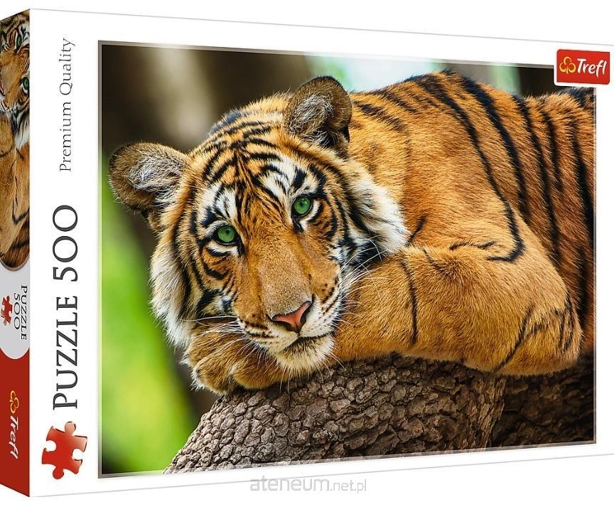 Puzzle firmy Trefl "Portret tygrysa" składające się z 500 elementów. Po ułożeniu powstanie obrazek o wymiarach 48x34 cm. Produkt został wykonany z wysokiej jakości materiałów, z zastosowaniem specjalnego kalandrowanego papieru odbijającego światło, co ułatwia układanie. Produkt został wyprodukowany w Polsce, a do produkcji zostały użyte materiały ekologiczne.