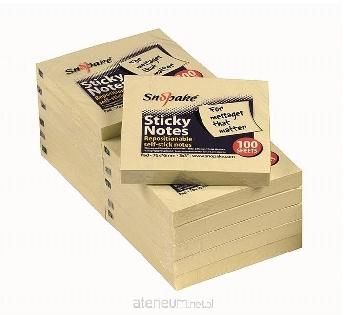 Bloczek samoprzylepnych karteczek marki Snopake, w kolorze żółtym. Opakowanie zawiera łącznie 100 szt. karteczek o wymiarze 76x76 mm, które można swobodnie przyklejać i odklejać. Idealnie nadają się do zaznaczania dokumentów i opisywania stron.