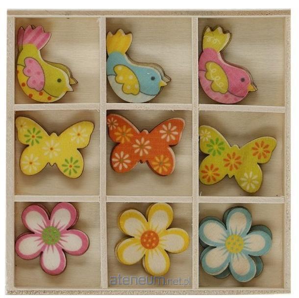 Drewniane dekoracje w pudełku mix wzorów 27szt