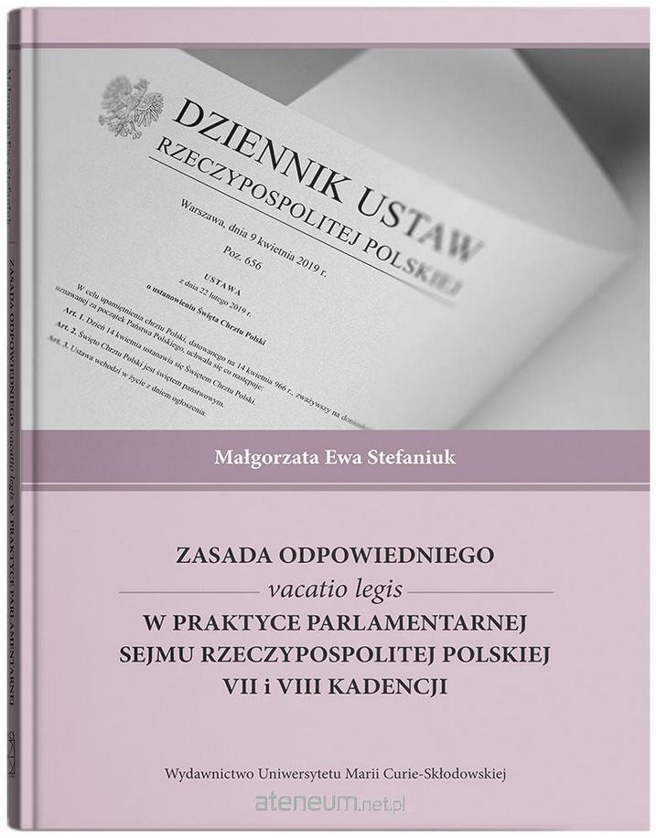 Monografia może stanowić istotne źródło wiedzy oraz inspiracji nie tylko dla przedstawicieli nauki prawa konstytucyjnego, teorii, filozofii i socjologii prawa czy politologii, ale również wprost dla parlamentarzystów, przedstawicieli organów prawodawczych, tworzących akty prawa miejscowego czy ekspertów współpracujących z Sejmem i Senatem RP. Trafne (w tym miejscami krytyczne) wnioski oraz postulaty de lege ferenda Autorki mogą przyczynić się do ożywienia dyskusji na temat statusu prawnego, rozumienia i realizacji zasady odpowiedniego vacatio legis. A ponadto mogą okazać się pomocne w pożądanej poprawie praktyki legislacyjnej w tym zakresie, istotnej nie tylko dla procesów tworzenia, ale również obowiązywania, przestrzegania i stosowania prawa. - dr hab. Adam Zienkiewicz Uniwersytet Warmińsko-Mazurski w Olsztynie