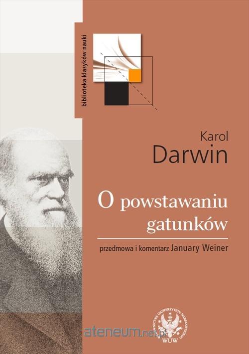 Książka ta jest pierwszym nowoczesnym polskim wydaniem słynnego dzieła Karola Darwina, odtwarzającym kanoniczną wersję O powstawaniu gatunków z 1859 roku (publikowany dotąd polski przekład z XIX wieku został wykonany na podstawie szóstej edycji z 1872 roku, uznawanej obecnie za wersję zawierającą zbyt wiele zmian o charakterze doraźnych polemik). Czytelnik ma zatem okazję przekonać się, jak brzmi tekst, który wywarł tak ogromny wpływ na naszą cywilizację oraz kulturę i który do dzisiaj w rozmaitych środowiskach osób, z reguły nieznających go z bezpośredniej lektury, wywołuje gorące spory. Jednocześnie czytelnik będzie mógł poznać fascynującą osobowość Darwina, jego niezwykłą dociekliwość, pracowitość i pomysłowość w planowaniu oraz prowadzeniu niezliczonych obserwacji i doświadczeń. Warto przy tym zauważyć, że dzieło to ujawnia pisarski talent Darwina, dla którego świat przyrody jest nie tylko przedmiotem zainteresowania uczonego, lecz także pretekstem do tworzenia prozy o godnych uwagi walorach literackich. Bo czyż nie zapadają głęboko w pamięć obrazy, takie jak ten: "Jakież to frapujące, kiedy przyglądając się gęsto zarośniętemu zboczu, pokrytemu mnóstwem roślin różnych gatunków, z ptakami śpiewającymi wśród krzewów, z rozmaitymi owadami unoszącymi się w powietrzu i robakami pełzającymi wskroś wilgotnej gleby, zdamy sobie sprawę, że te przedziwnie złożone formy, tak bardzo różniące się między sobą i uzależnione od siebie w sposób tak skomplikowany, wszystkie one są wynikiem praw, które nadal działają wokół nas". Niniejsze wydanie zawiera obszerny komentarz pióra profesora Januarego Weinera z Uniwersytetu Jagiellońskiego, prezentujący oryginalną myśl Darwina na tle współczesnej wiedzy o ewolucji. W licznych przypisach przedstawiono również sylwetki cytowanych przez Darwina autorów oraz wielkiej grupy badaczy amatorów, których doniesienia wykorzystywał on w pracy nad swoją teorią.