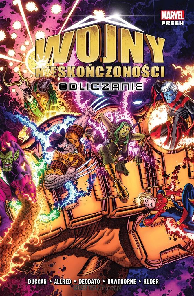 Kamienie Nieskończoności powróciły. Każdy, kto posiądzie choć jeden, zyska niebywałą moc, a ten, kto zbierze wszystkie, zostanie bogiem! Nikt jednak nie wie, gdzie się znajdują, więc najwięksi bohaterowie i najwredniejsi złoczyńcy uniwersum Marvela wyruszają na ich poszukiwanie. Pierwsza bitwa rozegra się o Kamień Mocy. Kolejne mogą pogrążyć wszechświat na zawsze! Czy Strażnicy Galaktyki zdołają w porę zakończyć ten szalony wyścig? I jakie role odegrają Adam Warlock, pewien podróżujący w czasie arcyłotr oraz odrodzony Wolverine? Oto pierwszy album z nowej linii wydawniczej Marvel Fresh, która zastąpi Marvel NOW! 2.0 i w której będą się odtąd ukazywały najnowsze komiksy z wydawnictwa Marvel. Album Wojny nieskończoności: Odliczanie oraz jego kontynuacja Wojny nieskończoności łączą obie te linie wydawnicze zamykają wątki ze Strażników Galaktyki (Marvel NOW! 2.0), a jednocześnie przygotowują uniwersum Marvela i jego bohaterów na kolejne przygody, które zobaczymy już w Marvel Fresh. Scenariusz Wojen nieskończoności: Odliczania napisał Gerry Duggan, autor znany z serii Deadpool i Strażnicy Galaktyki. Rysunki stworzyli Michael Allred i Laura Allred (Silver Surfer), Mike Deodato Jr. (Grzech pierworodny, Niezwyciężony Iron Man), Mike Hawthorne (Deadpool) oraz Aaron Kuder (Strażnicy Galaktyki). Album zawiera zeszyty: Infinity Countdown: Adam Warlock #1, Infinity Countdown Prime #1 i Infinity Countdown #15.