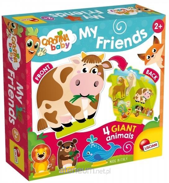 oi zwierzęcy przyjaciele to nowa propozycja z serii Carotina Baby. Produkt zawiera 4 zwierzątka, które jednocześnie służą za typowych przedstawicieli środowisk, którzy je zamieszkują - wieloryba, lwa, niedźwiadka i krowę. Do każdego z nich należy dopasować małe zwierzątka, które pasują do danego środowiska. Każde duże zwierzę posiada odpowiednie wypukłe miejsca, dzięki czemu dziecko może dokonywać klasyfikacji samodzielnie. Zabawa pozwala na poznanie zwierząt oraz ćwiczenie chwytu. Elementy wykonane są z trwałej tektury, która bez problemu przetrwa zabawę z dziećmi.