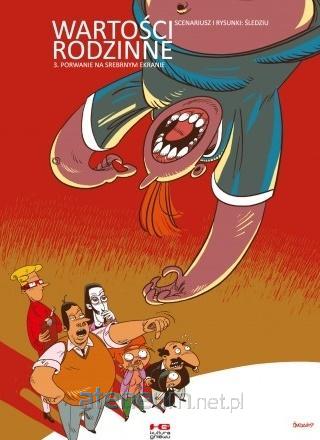 W trzeciej odsłonie Wartości rodzinnych rodzina Królów wybiera się do siedziby telewizji Kanał, produkującej takie programy, jak Gwiazdy strzelają do ludzi. Zaproszeni przez znajomego, producenta Wronkę, mają uczestniczyć w emitowanym na żywo jednym z największych show stacji - wieczorze z Tucholskim Patrolem, łowcami dzikich bestii. Jednak podczas transmisji z prezentacji ich najnowszej zdobyczy dochodzi do tragedii. No, ale czego innego można się było spodziewać po telewizji? W zeszycie Porwanie na srebrnym ekranie prócz mrożących krew w żyłach scen z siedziby Kanału pojawi się także mroczna pani od sprzątania z Ukrainy i generał Grot a czytelnicy doczekają się powrotu pana J.