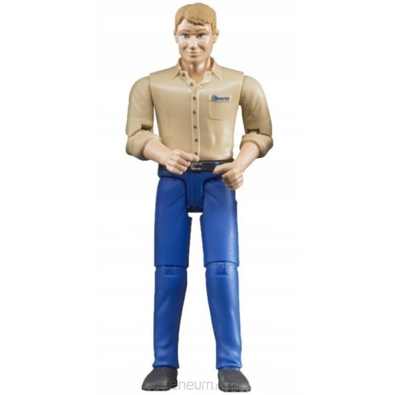 Figurka mężczyzny w niebieskich dżinsach Bruder 60006 Skala 1:16 Seria bWorld Figurka może być wykorzystana w połączeniu z innymi zabawkami Brudera do stworzenia bogatej, kształtującej wyobraźnię dziecka scenerii placu zabaw odzwierciedlającej zdarzenia z dorosłego świata.