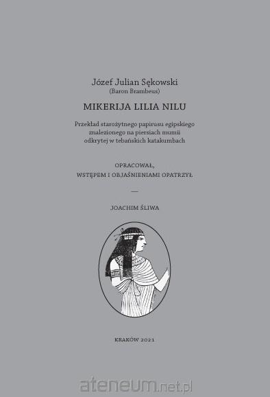 W dorobku Józefa Juliana Sękowskiego (1800-1858), znanego orientalisty, znajdują się również teksty o innym charakterze. Jako Baron Brambeus ogłosił Sękowski drukiem rodzaj pastiszu literackiego, usytuowanego na pograniczu pewnego rodzaju prowokacji intelektualnej, w którym jako autor starał się jednocześnie czytelnikowi w przewrotny nieco sposób przekazać pewien zasób wiedzy o dziejach starożytnego Egiptu i jego cywilizacji. W tomiku prezentowanym obecnie wykorzystał Sękowski swe doświadczenia związane z wyprawą do Egiptu i Nubii (1821). Nabył wówczas egipski papirus grobowy z I wieku n.e. który wkrótce potem ofiarował Uniwersytetowi Jagiellońskiemu. Przyjął też na siebie rolę rzekomego edytora naukowego tak cennego źródła historycznego, sięgającego czasów XII wieku p.n.e. Zasadniczą intrygę oparł Sękowski na przekazie Herodota (Dzieje, II 121), opisującego zmagania faraona Rampsynita (Ramzes II), usiłującego pojmać sprytnego rabusia, naruszającego zasoby jego skarbca. Pierwodruk Mikeriji Lilii Nilu ukazał się w języku rosyjskim w roku 1845; niniejszy przekład stanowi jego pierwsze tłumaczenie na język obcy.