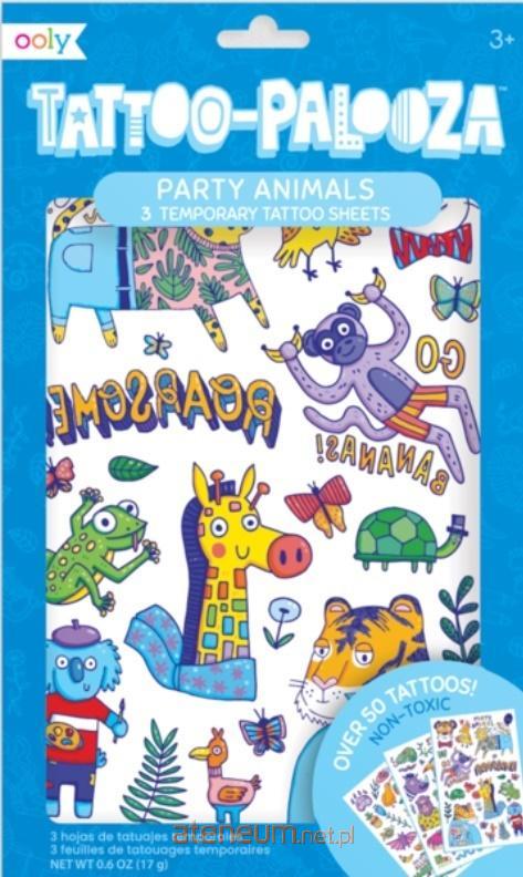 Jeśli masz coś do powiedzenia, możesz to wyrazić za pomocą zmywalnych tatuaży Tattoo-Palooza. Zestaw Wesołe Zwierzaki zawiera 3 arkusze tymczasowych tatuaży; to ponad 50 kolorowych wzorów! W tym zestawie znajdziesz imprezowe tukany, leniwce, koale i wiele innych. Tattoo-Paloozas są łatwe w aplikacji, utrzymują się do 5 dni, są łatwe do usunięcia i nietoksyczne. Rozpocznij super zabawę ze słodkimi zwierzaczkami gotowymi na imprezę! Zestaw uroczych tatuaży Tattoo Palooza - Wesołe Zwierzaki zawiera 3 arkusze tatuaży z kolorowymi wzorami zwariowanych zwierzątek. To ponad 50 tatuaży przedstawiających żyrafy, małpy, tygrysy i wiele więcej. Te tymczasowe tatuaże są łatwe do nałożenia i utrzymują się do 5 dni. Zabawne, tymczasowe tatuaże z motywem wesołych zwierzaków 3 arkusze tatuaży - ponad 50 wzorów Łatwe do nałożenia Rozmiar jednego arkusza: 13,2 x 20,8 cm Utrzymują się do 5 dni Przy zabawie zalecany jest nadzór osoby dorosłej Odpowiednie dla dzieci w wieku od 3 lat Nietoksyczne