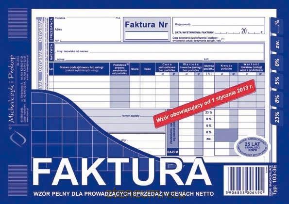 Rachunek dla zwolnionych podmiotowo z VAT 231-3
