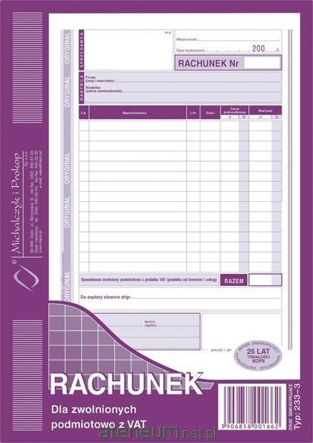 Rachunek dla zwolnionych podmiotowo z VAT 231-3