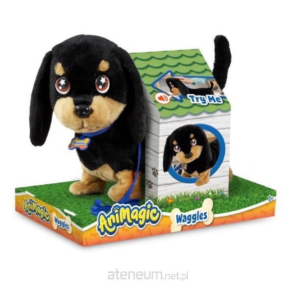 Waggles, interaktywny piesek który pójdzie tam gdzie Ty! Piesek w nowym, jeszcze bardziej kolorowym opakowaniu. Waggles ma również nowy niebieski kolor smyczy oraz nowe oczka. Piesek chodzi, macha ogonkiem i szczeka. Poklep go po głowie a pójdzie z Tobą na spacer! Piesek ma delikatne i miłe w dotyku futerko. Smycz na której bez problemu pójdziecie razem na spacer, a na obroży identyfikator z imieniem. Zabawka dla dzieci od lat 3 W zabawce znajdują się baterie demonstracyjne , zaleca się ich wymianę do zabawy! Produkt wymaga baterii: 4 x AA