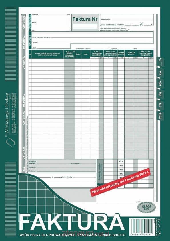 Faktura wzór uproszczony dla prowadzących.. 123-3E