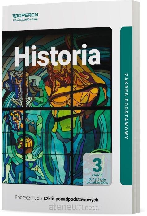Podręcznik Historia 3. Część 1. Zakres podstawowy został przygotowany dla uczniów klasy 3 liceów ogólnokształcących i techników, którzy rozpoczynają naukę przedmiotu historia w klasie trzeciej. Publikacja obejmuje zakres od 1815 r. do początków XX w. i pozwala zrealizować treści przewidziane do nauki tego przedmiotu w pierwszym semestrze. Każdy rozdział podręcznika otwiera spis tematów z danego obszaru. Natomiast każdy temat zawiera wypunktowane cele lekcji, które uczniowie osiągną po przyswojeniu danej partii materiału. Publikacja zawiera liczne teksty źródłowe, infografiki i mapy ilustrujące treści merytoryczne. Elementy te opatrzone poleceniami pomagają w rozwinięciu umiejętności analizy zawartych w nich wiadomości. Informacje o źródle to kolejne elementy, które poszerzają wiedzę, a także są punktem wyjścia do dyskusji i doskonalenia analizy. W toku lekcji do poszczególnych elementów zaproponowano wiele poleceń i pytań do wykorzystania przez nauczyciela lub do nauki samodzielnej przez ucznia w domu. Hasła na marginesach to treści obowiązkowe do zapamiętania. Bloki Podsumowanie lekcji i Podsumowanie przed sprawdzianem znajdujące się na końcu działu zawierają esencję wiadomości i umożliwiają szybkie powtórki. Podręcznik kończy się polecaną listą lektur, które warto poznać, oraz indeksami: osobowym i pojęć. Na uwagę zasługują liczne zdjęcia i grafiki bogato ilustrujące tematy z zakresu kultury, sztuki i innych dziedzin ważnych i rozwijających się w omawianych okresach, pozwalające wyobrazić sobie koloryt tamtych epok. Podręcznik do historii, zakres podstawowy dla szkół ponadpodstawowych składa się z 4 działów: Europa i świat po kongresie wiedeńskim Polacy w latach 18151848 Europa i świat od połowy XIX w. Ziemie polskie i ich mieszkańcy od połowy XIX w.