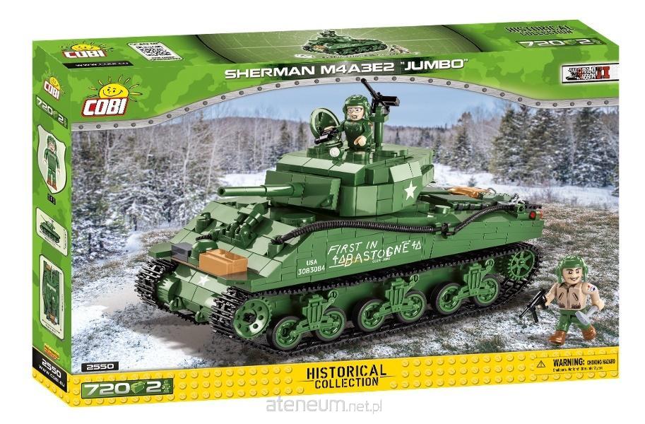 Z zestawu 750 klocków konstrukcyjnych COBI wybudujesz najbardziej znanego spośród Shermanów -- model M4A3E2 JUMBO, czyli egzemplarz Cobra King, który jako pierwszy wjechał do belgijskiego Bastogne. Model zawiera elementy pokryte wysokiej jakości nadrukami, które nie ścierają się nawet w trakcie intensywnego użytkowania. Na szczególną uwagę zasługuje bardzo charakterystyczne graffiti namalowane przez załogę czołgu. Konstrukcja doskonale odzwierciedla oryginalne kształty swojego historycznego pierwowzoru. Ruchome koła i pracujące gąsienice, otwierane włazy, dostęp do klockowego silnika, ruchoma wieża i lufa oraz dwie figurki gwarantują satysfakcję z posiadania tego inspirowanego prawdziwą historią zestawu! Całość uzupełnia tabliczka z nazwą pojazdu.
