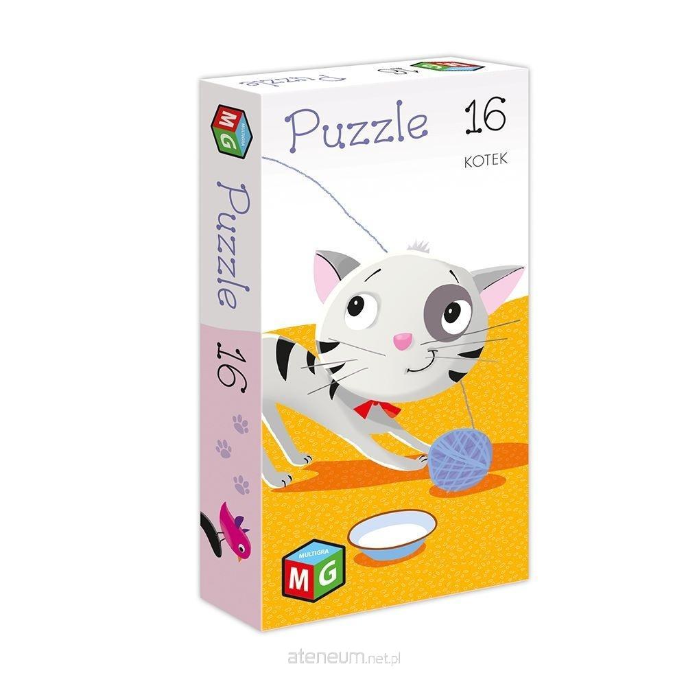 W prawidłowym rozwoju dziecka niezwykle ważną rolę pełnią gry i zabawki edukacyjne. Z myślą o potrzebach najmłodszych powstała seria pięknie i barwnie ilustrowanych 16-elementowych puzzli, które po ułożeniu tworzą obrazek o wymiarach 22,5x22,5cm. Niewielkie pudełko sprawia, że sprawdzą się także jako układanka, którą można zabrać na każde wyjście. Puzzle trenują pamięć, koncentrację i spostrzegawczość. Duże elementy są wygodne do złapania, dzięki czemu ćwiczą także małą motorykę. Kotek może zostać najlepszym przyjacielem maluchów.