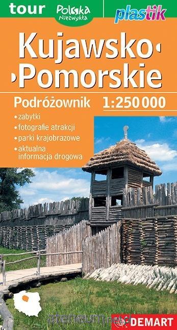 PODRÓŻOWNIK znakomicie łączy na mapie aktualne informacje drogowe z lokalizacją i opisem miejsc i obiektów zabytkowych, rekreacyjnych oraz ze wskazaniem najcenniejszych dóbr kultury i natury. Mapa przeznaczona jest nie tylko dla kierowców, ale i dla turystów, którzy podróżują po Polsce i lubią odkrywać nowe miejsca. Zaznaczono na niej wiele obiektów sakralnych i świeckich ze szczególnym uwzględnieniem Pomników Historii i obiektów z list UNESCO, osobliwości przyrodniczych, zwłaszcza chronionych, wreszcie miejsca inscenizacji historycznych. Na odwrocie mapy znajdują się natomiast opisy wielu atrakcji zilustrowane zdjęciami. Wśród nich m.in. są takie obiekty zabytkowe jak starówka w Chełmnie (matce polskich miast), zamki w Radzyniu Chełmińskim czy Świeciu, romańskie kościoły w Inowłodzu czy Strzelnie, dworek w Szafarni, w którym grywał Chopin oraz wszystkie parki krajobrazowe: Górznieńsko-Lidzbarski, Krajeński, Nadgoplański Park Tysiąclecia, Tucholski, Wdecki i wreszcie Zespół Parków Krajobrazowych Chełmińskiego i Nadwiślańskiego. Naprawdę każdy turysta znajdzie tu coś dla siebie.