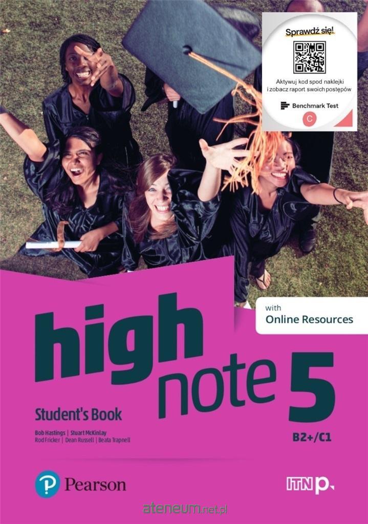 High Note 3. Student's Book + kod (Digital Resources + Interactive eBook) zawiera: elastyczny podział materiału lekcyjnego, sekcję referencyjną z wyjaśnieniami gramatyki w języku polskim oraz dodatkowymi zadaniami, dodatkowe zadania na środki językowe na końcu książki, listy słów w formie audiokursu, lekcje kulturowe Culture Spoti Literature Spot. Dostęp do interaktywnej wersji podręcznika z ćwiczeniami online na platformie producenta, która daje nauczycielowi możliwość śledzenia zaangażowania uczniów w wirtualnej klasie oraz ciekawe narzędzia motywujące młodzież do pracy zdalnej. Kod dostępu jest ważny przez 24 miesiące od daty aktywacji i można go aktywować tylko na jednym urządzeniu. Nauczyciel posiada automatyczny dostęp do Interactive eBook na stronie producenta, jeśli korzysta z aplikacji ePanel i ma przyznany dostęp do tego kursu. Test Benchmark Aktualna edycja podręcznika została wzbogacona o indywidualny kod dostępu do przygotowanego przez wydawnictwo Pearson testu Benchmark. Benchmark to test online, który umożliwia zarówno uczniowi, jak i nauczycielowi szybką, rzetelną i kompleksową ocenę umiejętności językowych w zakresie mówienia, pisania, czytania oraz rozumienia ze słuchu w języku angielskim. Na przedniej okładce podręcznika została umieszczona naklejka z informacjami związanymi z procesem aktywacji kodu, samym testem oraz sposobem jego przeprowadzenia. Do podręcznika High Note 3 został dołączony kod dostępu do testu Benchmark na poziomie B2.