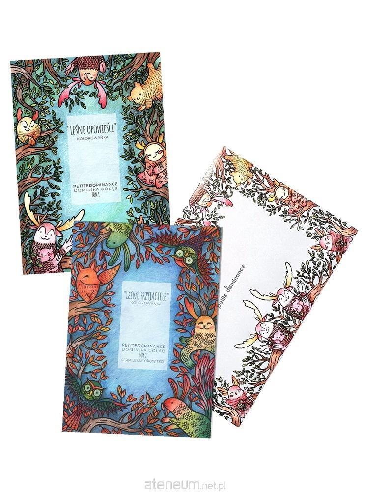 Zestaw kolorowanek złożony z tomów 1 i 2 z serii Leśne opowieści ("Leśne opowieści" i "Leśni przyjaciele") zapakowanych w ozdobną kopertę. Wszystkie ilustracje powstały ręcznie, z najwyższą dbałością o szczegóły. Ich indywidualny styl sprawia, że jest to produkt wyjątkowy i niepowtarzalny. Cała seria została wydrukowana w Polsce, na papierze o gramaturze 200 g posiadającym certyfikat ekologiczny FSC. Kartki sklejone są tak, aby łatwo było je rozłożyć i w razie potrzeby wyrwać. Pokolorowany obrazek stanie się wtedy ozdobą ściany lub spersonalizowanym prezentem dla najbliższych. Kolorowanki Petite dominance to gwarancja wspaniałej, rozwijającą zabawy, która wciągnie na długie chwile i podbije serca dzieci i dorosłych!