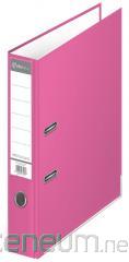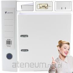 - format A4 - okładka z kredy zabezpieczona folią błysk - w środku papierowa wyklejka - wyposażony w 2 ringi oraz dźwignię z dociskaczem - wzmocniony otwór na palec - dolne krawędzie usztywnione metalową szyną - wymienna etykieta grzebietowa - szerokość grzebietu 50mm