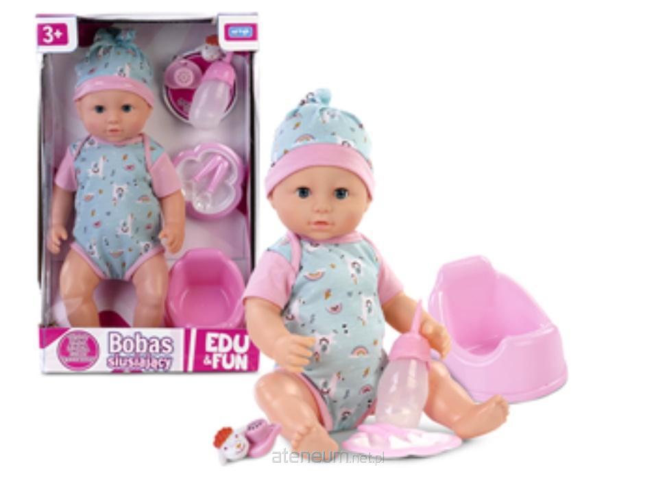 W ZESTAWIE: LALKA 41 CM., NOCNIK, TALERZYK, SZTUĆCE, SMOCZEK, BUTELKA, FUNKCJE: PO NAPOJENIU LALKA SIUSIA, SMOCZEK POSIADA PRZYCISK ODPOWIADAJĄCY ZA DŹWIĘKI GAWORZENIA I PŁACZU, WYM. OPK. 26 X 44,5 X 14 CM., BATERIE: 1 X CR2032 3,2V ZAŁ. DEMONSTRACYJNE, 3+