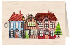 Karnet drewniany C6 + koperta Święta Domki