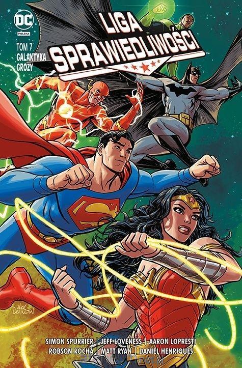 W siódmym tomie serii Liga Sprawiedliwości zmierza do gwiazd. Na największych bohaterów DC czekają kosmiczni złoczyńcy i tajemnice! Najpierw Superman, Batman, Wonder Woman, Green Lantern i Flash odpowiedzą na wezwanie o pomoc. Trafią na podzielony wojną gatunek Trotha. Czy ziemscy bohaterowie zostaną uznani za wybawicieli, czy za najeźdźców? A może za jednych i drugich? Czy Liga Sprawiedliwości zjednoczy mieszkańców planety, zanim zniszczy ich zło? Następnie członkowie Ligi odnajdą rodzimą planetę pasożytniczej rośliny znanej jako Czarna Łaska, zsyłającej żywicielom wizje idealnego życia. Pod wpływem tej rośliny Batman wreszcie odnajdzie spokój, ale jego koledzy będą musieli zabrać go z tego raju, żeby wszyscy mogli przetrwać! Scenariusz historii zamieszczonych w albumie napisali Simon Spurrier (John Constantine: Hellblazer) oraz Jeff Loveness (Rick i Morty), a zilustrowali je Aaron Lopresti (Wonder Woman) i Robson Rocha (Aquaman). Ich opowieści dowodzą, że Liga Sprawiedliwości to najwięksi bohaterowie niejednego świata! Album zawiera materiały pierwotnie opublikowane w amerykańskich zeszytach Justice League #4852.