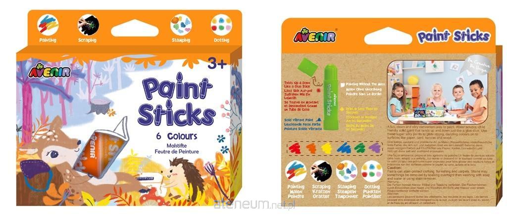 Zabawny, czysty i bardzo wygodny sposób malowania.Rozpuszczalna w wodzie, przyjazna dzieciom, trwała farba, którą maluch operujetak jak tubką kleju. Użyj tych super jedwabistych farb, aby tworzyć wyraźne,olśniewające kolory na powierzchniach, takich jak papier, tektura, płótno idrewno. Farba w sztyfcie wysycha w mniej niż 60 sekund - malowanie bezbałaganu. Świetny prezent dla każdego dziecka, które kocha malować ikolorować. W zestawie: 6 farb wsztyfcie Wiek:3+