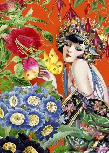 Karnet drewniany C6 + koperta Kobieta z balonem