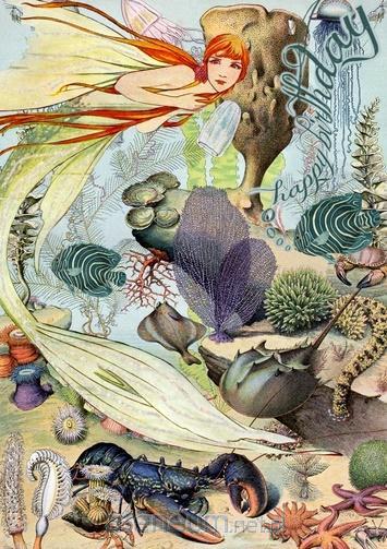 Karnet B6 brokat z kopertą Syrena i ryby