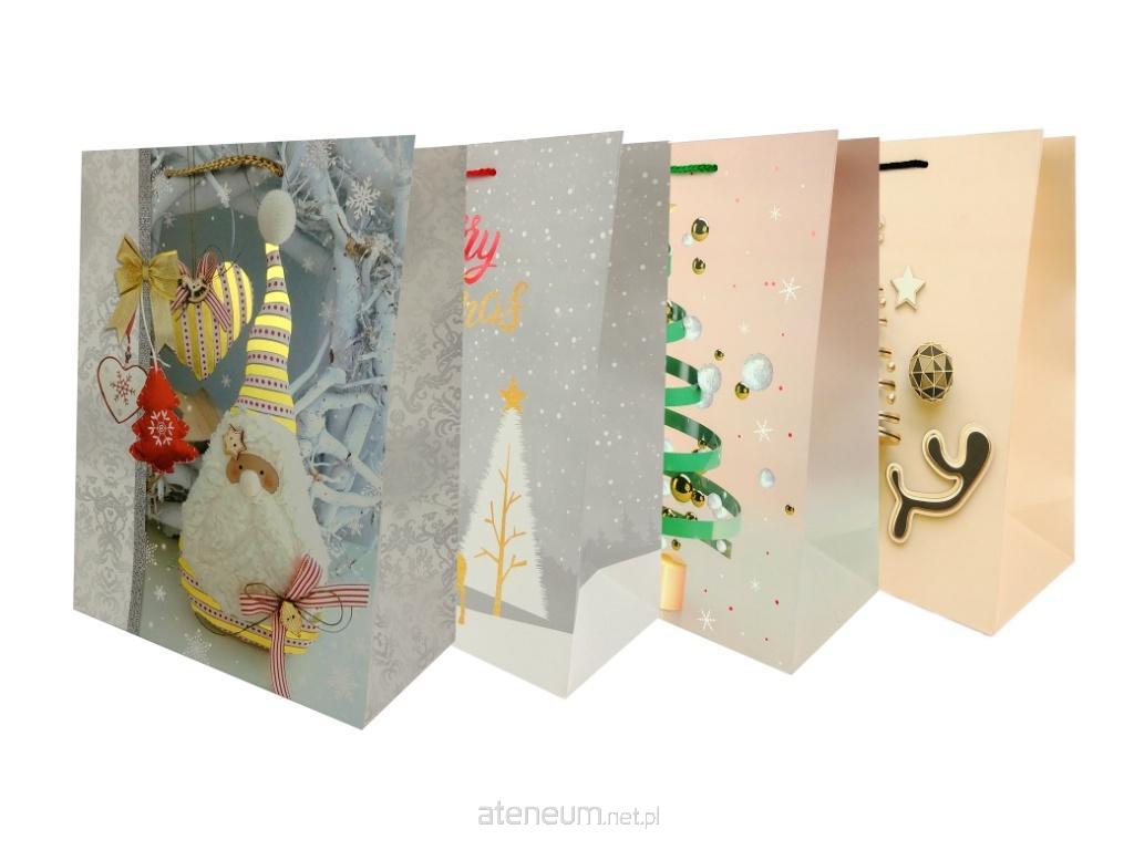 Mix wzorów. Towar wysyłany losowo. Torebka Świąteczna pionowa duża z motywem Świąt Bożego Narodzenia,