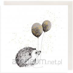 Karnet złocony kwadrat CL3814_BL Jeż z balonami