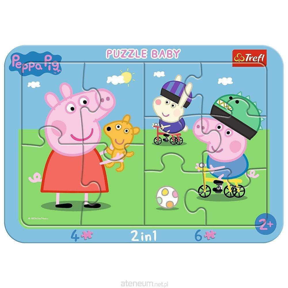 Wesoła Świnka Peppa to dwie progresywne układanki dla malucha wykonane z grubej tektury. Po ułożeniu ich w ramce tworzą jeden duży obrazek. Układanka zawiera 10 elementów umieszczonych w ozdobnej, spójnej graficznie ramce, tworzącej z obrazkiem bardzo ładną całość. Wyraziste kolory i prosty wzór są idealnie dostosowane do wieku i umiejętności dziecka.