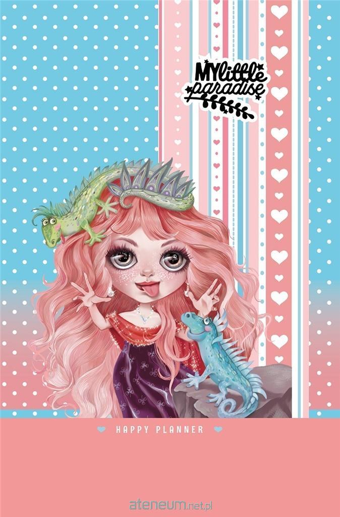 Ozdobny planer "My little paradise", w twardej oprawie z brokatem dedykowany dziewczynkom. Zawiera 96 kartek w kratkę, z różnokolorowymi marginesami oraz ilustracjami. Znajdują się w nim plan lekcji, jak i strony z łamigłówkami. Planer jest w języku angielskim, wyprodukowany na Ukrainie.