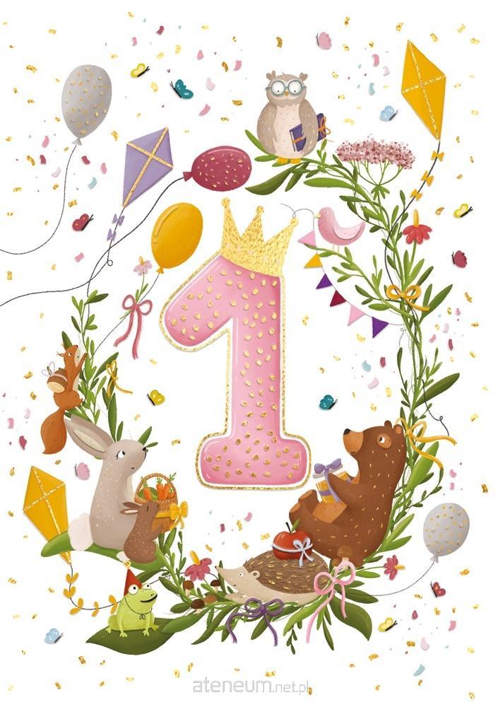Karnet B6 brokat z kopertą Urodziny 1 dziewczynka