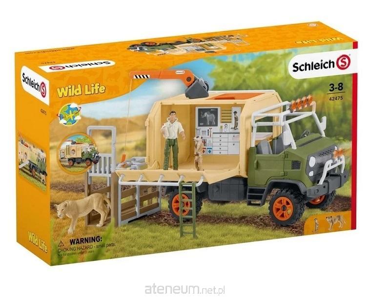 Strażnik Tom i jego przyjaciel surykatka Ted wyruszają ciężarówką ratunkową dla zwierząt z serii Schleich® Wild Life do pierwszej wspólnej akcji ratunkowej. Podczas safari Tom i Ted znajdują lwicę, której muszą udzielić natychmiastowej pomocy w ciężarówce. W tym celu spuszczają kabinę ratunkową na ziemię. Teraz mogą pomóc lwicy. Ich auto jest bowiem świetnie wyposażone, a strażnik Tom zawsze ma przy sobie apteczkę i stetoskop. Po opatrzeniu lwica umieszczona zostaje w skrzyni transportowej. Najpierw za pomocą dźwigu kabina wciągana jest na ciężarówkę, a potem skrzynia może zostać umocowana na samochodzie. Przy dużym wodopoju Tom i Ted wypuszczają lwicę ze skrzyni. Tu będzie mogła sobie odpocząć. Wciągarkę do dźwigu można przymocować przy kabinie kierowcy.