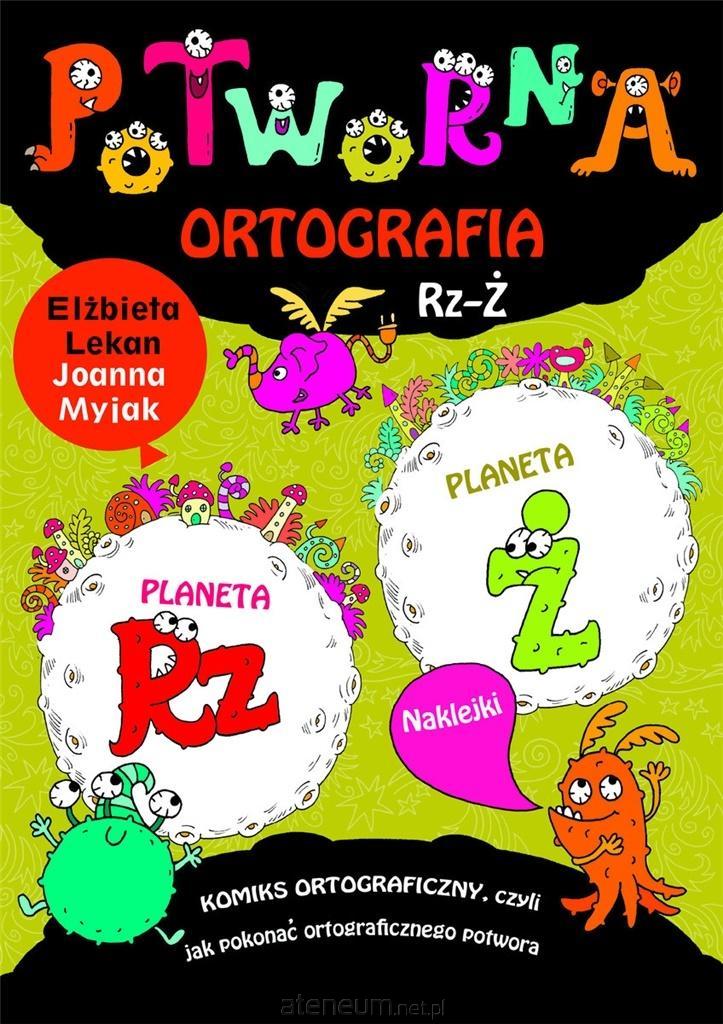 Seria komiksów podpowiadających, jak pokonać potwory ortograficzne. Przeczytaj krótkie teksty, podpisy pod ilustracjami, naklej odpowiednie nalepki i zostań pogromcą potworów. Ortografii nauczysz się, czy chcesz czy nie. Przed tobą wspaniała przygoda i mnóstwo wyzwań.