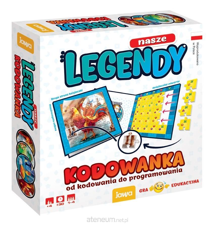 Kodowanka zawiera obrazki przedstawiające scenki z czterech legend: Bazyliszek, Złota Kaczka, Pan Twardowski, Smok Wawelski. Obrazki zostały podzielone na 25 kwadratowych elementów. Z tyłu, na koszulce każdego elementu znajduje się kod na kolorowym tle - każda legenda ma swój kolor. Należy umieścić w książeczce wszystkie elementy jednego koloru według kodów. Jeżeli elementy zostaną prawidłowo ułożone, po zamknięciu książeczki i odwróceniu jej w okienku pojawi się obrazek z legendy. Na końcu instrukcji znajdują się krótkie opisy czterech legend. Przed rozpoczęciem kodowania proponujemy przeczytanie dziecku opisu wybranej legendy. Sugerowany wiek: + 4 lata.