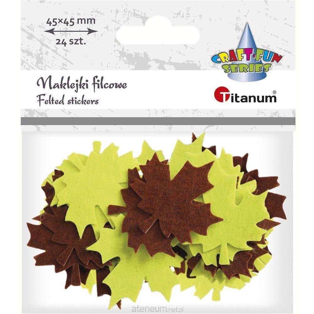 Naklejki filcowe, wzór: liść klonu, wymiary: 45 x 45 mm, kolory: zielony, brązowy. 24 sztuki.
