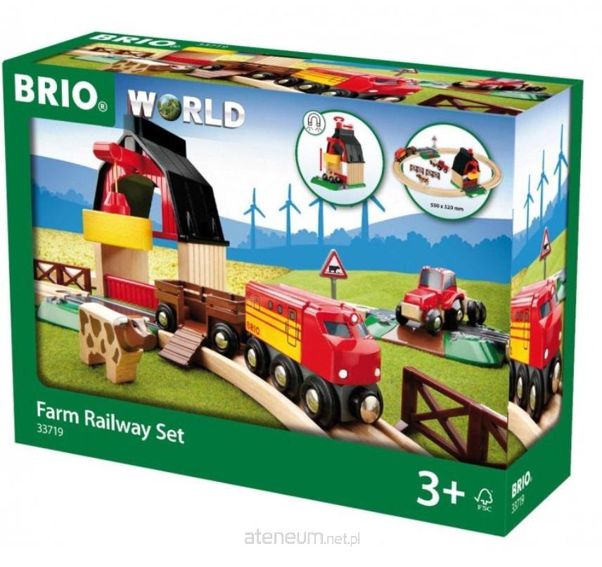 Tym razem tory Brio przenoszą nas na farmę. Dzięki 19-elementowemu zestawowi BRIO World dziecko może wcielić się w rolę farmera. Po pracowitym dniu rolnik wiezie ciągnikiem siano z pola, a następnie dźwig magnetyczny za pomocą pokrętła podnosi je na poddasze stodoły. Zwierzęta mogą być przewożone pociągiem rolniczym, ale najpierw muszą dojechać do pociągu wozem, na który wchodzą przy pomocy rozkładanej rampy.