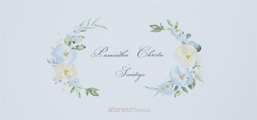Karnet Chrzest DL C19 - Krzyż kwiaty niebieski