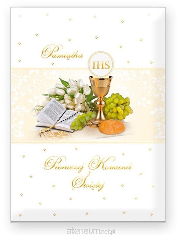 Książeczka okolicznościowa z okazji pierwszej komunii świętej. Twarda okładka ze złotą folią.