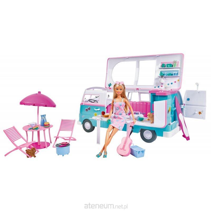 Wyrusz w drogę kamperem razem ze Steffi i przeżyj mnóstwo niezwykłych przygód! Zabawa jest jeszcze bardziej ekscytująca dzięki licznym akcesoriom. Popchnij pojazd, aby ruszyć w nieznane. Czas na wymarzone wakacje! Lalka Steffi z długimi, blond włosami ubrana jest w różowo-niebieską sukienkę i buty. Jest gotowa, aby wyjechać na wakacje swoim uroczym kamperem, który przekształca się z samochodu w wycieczkową strefę zabawy z łóżkiem, łazienką i kuchnią oraz wieloma dodatkowymi akcesoriami wyposażenia. Dodatkowo zestaw zawiera akcesoria do spędzania wolnego czasu przy grillu z gitarą lub na desce surfingowej. Dziewczynki pokochają niezliczone możliwości wyrażania siebie i opowiadania przeróżnych historyjek! To wspaniały prezent dla dzieci od 3 roku życia. Zawartość i cechy zestawu: Rozkładany kamper Lalka Steffi ubrana w sukienkę i buty (posiada zginane nogi) Wewnątrz: łóżko, kuchnia, łazienka Akcesoria m.in.: stół z parasolem, 2 krzesła, grill, deska do surfingu, liczne akcesoria kuchenne, imitacja artykułów spożywczych, gitara, koszyk, 2 pieski, radio Arkusz z naklejkami