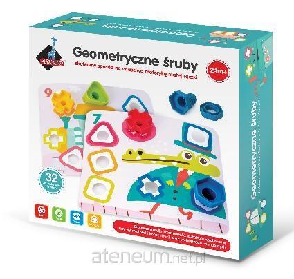 Śruby geometryczne to wspaniała i kreatywna zabawka z dużymi kolorowymi śrubami i nakrętkami przy użyciu kolorowych szablonów. Wkręcanie i odkręcanie śrub poprawia sprawność manualną, koordynację wzrokowo-ruchową oraz stymuluje rozwój małego dziecka w wielu obszarach. Pobudza zmysły, rozbudza wyobraźnię i kreatywność, jest ważna w ćwiczeniu motoryki małej. Elementy można sortować według kolorów lub kształtów lub dopasowując odpowiednią nakrętkę do śruby według koloru i kształtu. Ta aktywność zwiększa zdolności motoryczne. Śruby i nakrętki mają zaokrąglone krawędzie i zostały specjalnie zaprojektowane, aby sprostać indywidualnym potrzebom dziecka, aby zapewnić różnorodne doznania dotykowe.